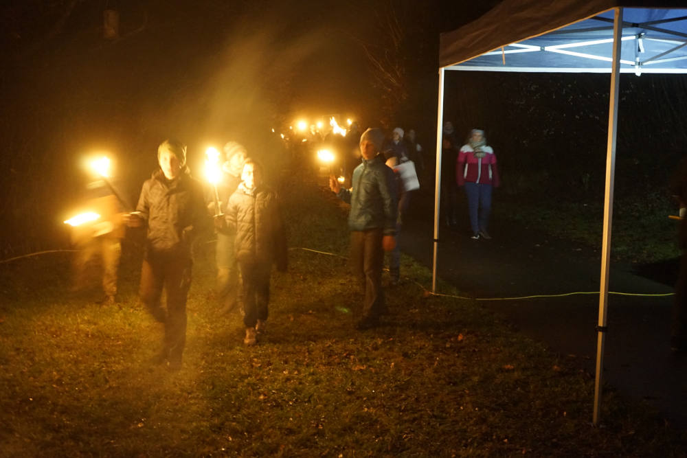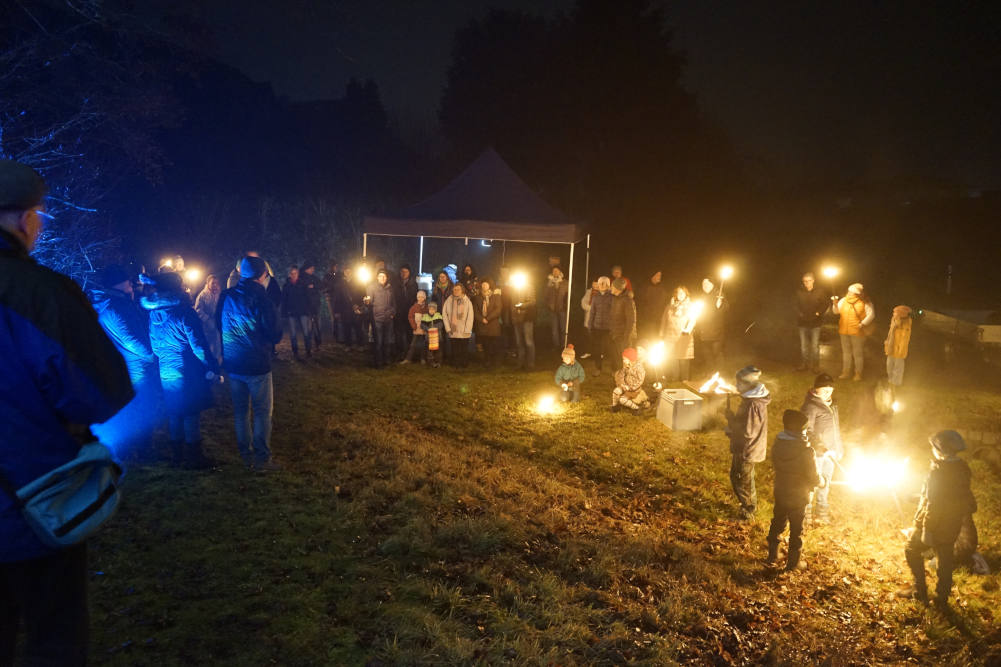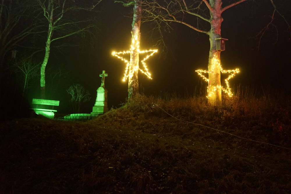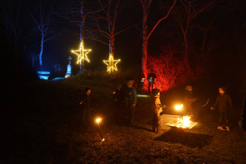 Das Adventsfenster am 3. Advent wurde von den Mitgliedern des Vereins Flurdenkmale Dürnau gestaltet. Ausgehend vom Waschhäusle gingen große und kleine Dürnauer in einer Lichterprozession zu Schillings Kreuz am Ortsausgang Richtung Braunenweiler. Dort beleuchteten zwei große Holzsterne das Kreuz und die umliegenden Bäume und Sträucher auf eindrucksvolle Weise. Zur vorweihnachtlichen Stimmung passend wurde dort die Geschichte vom kleinen Weihnachtsstern und seinem großen Abenteuer vorgelesen.