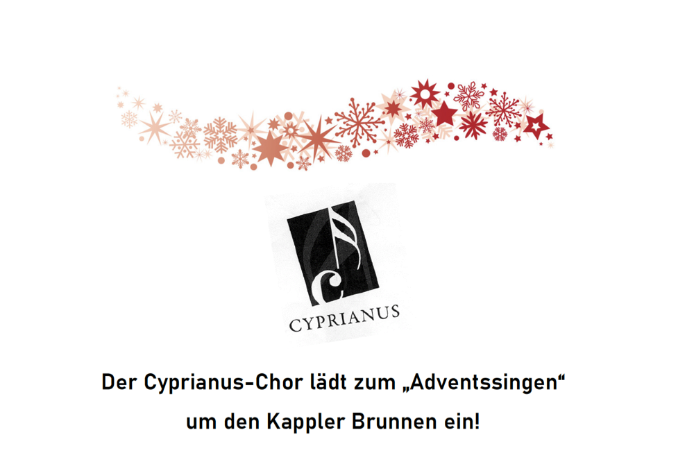 Der Cyprianuschor lädt auch dieses Jahr herzlich ein zum Adventssingen am Brunnen in Kappel am Samstag, 03.12.2022 nach der Vorabendmesse, die um 18.30 Uhr in der Kirche Kappel beginnt. Ein Ensemble der Stadtkapelle wird ebenfalls mitwirken.