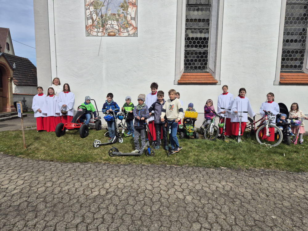 An Ostersonntag wurden bei uns in Dürnau viele Kinderfahrzeuge gesegnet, von Fahrrädern über Roller bis hin zu kleinen Traktoren. Mit Gottes Segen im Gepäck sind unsere jungen Fahrerinnen und Fahrer nun hoffentlich immer sicher unterwegs.