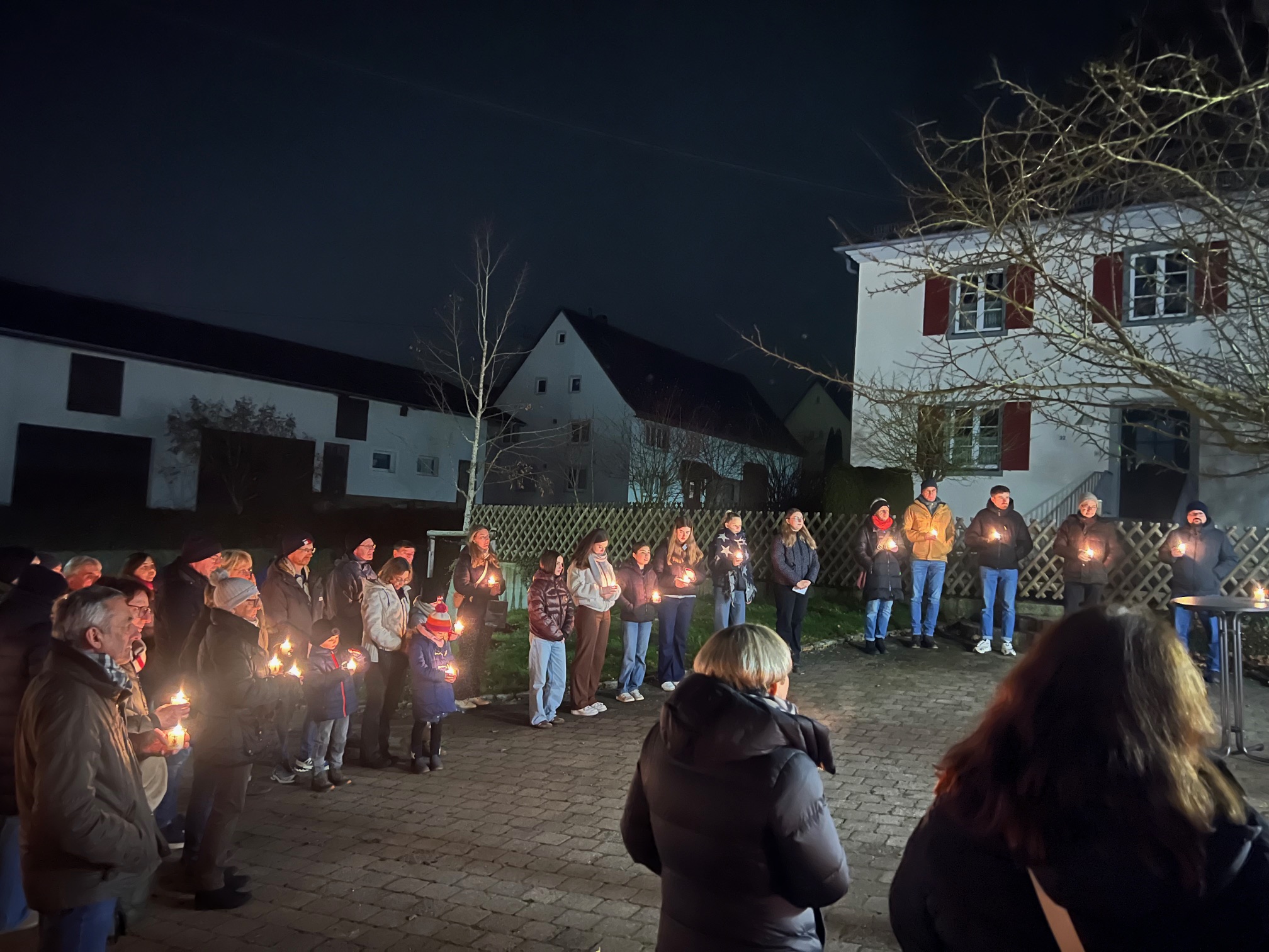 Am Samstag, 13.12. lud die KLJB Kanzach zu einer ganz besonderen Andacht ein: zu einem Weg-Gottesdienst, beginnend in der Kirche, wo sich durch originelle Beiträge das „Hoffnungslicht gegen allen Pessimismus“ durchgesetzt hat. Die notierten Sorgen und Nöte konnten an der zweiten Station in einer Feuerschale verbrannt werden. In einer dritten Station wurden wir zum Emmaus-Essen geladen, wo wir im Teilen des Brotes die Nähe Gottes zugesprochen bekamen. Zur vierten Station (Bild) erhielten alle Teilnehmer, derer es ca. 50 waren, ein Hoffnungslicht geschenkt, ein Licht des Heiligen Jahres für alle „Pilger der Hoffnung“. Zu guter letzt waren alle zu Punsch oder Glühwein und Knabbereien geladen. Großes Kompliment, liebe KLJB Kanzach! Das war sehr ansprechend und gelungen.