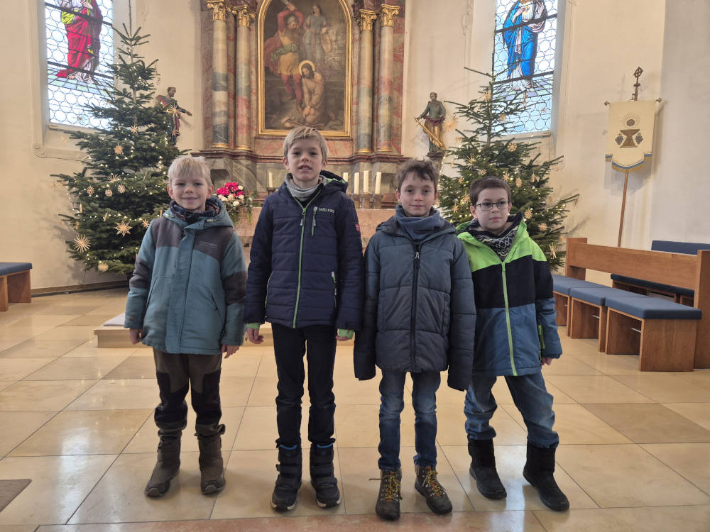 Wojtek, Pius und Wendelin aus Dürnau und Lucas aus Kanzach bereiten sich gemeinsam auf die Feier der Erstkommunion im April vor.
