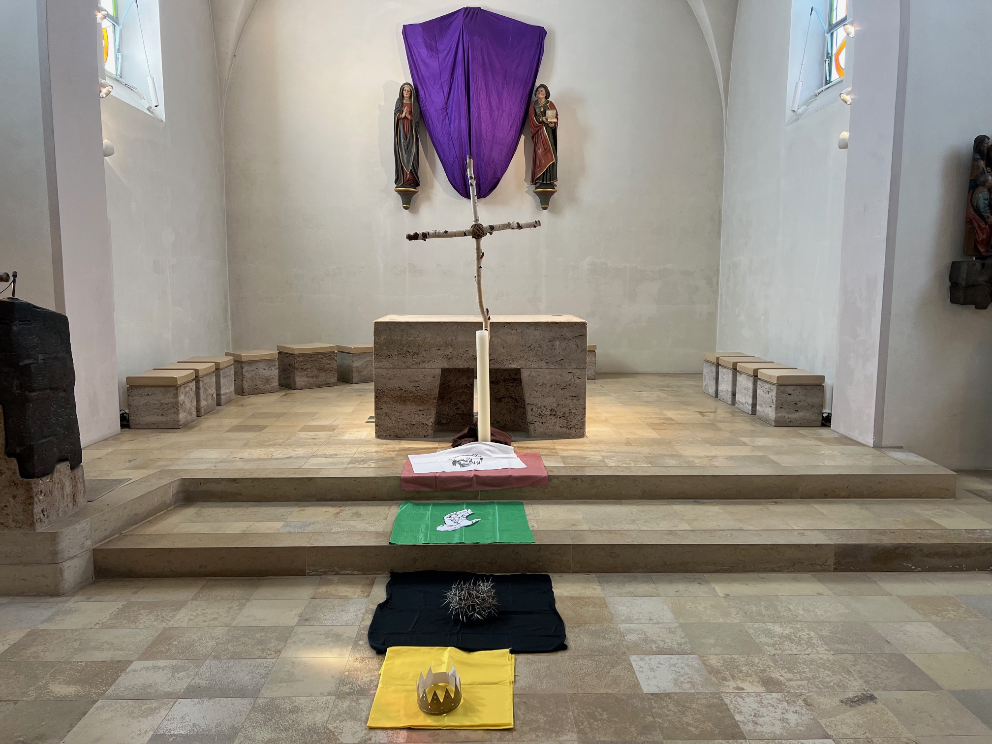 Über 50 Kinder mit ihren Familien fanden sich am Karfreitag in Kappel zum Kinderkreuzweg ein. Vom Friedhofskreuz oberhalb der Kirche zogen alle wie seinerzeit die Menschen in Jerusalem in die Kirche, um Christus zu begrüßen und zu feiern, der in Gestalt der Jesuskerze alle Stationen mitging und durchlief. Jedes Mal aufs Neue macht es betroffen, wie sein Sterben mit dem Ausblasen der Kerze bedacht und wahrgenommen wird. So konnten schließlich die Kreuze gesegnet und den Kommunionkindern übergeben werden, die sie am Fest der Erstkommunion über dem Gewand tragen werden. Die Botschaft des Karfreitags konnte in seiner reichen Symbolsprache auf diese Weise auch von den Kindern aufgenommen werden.